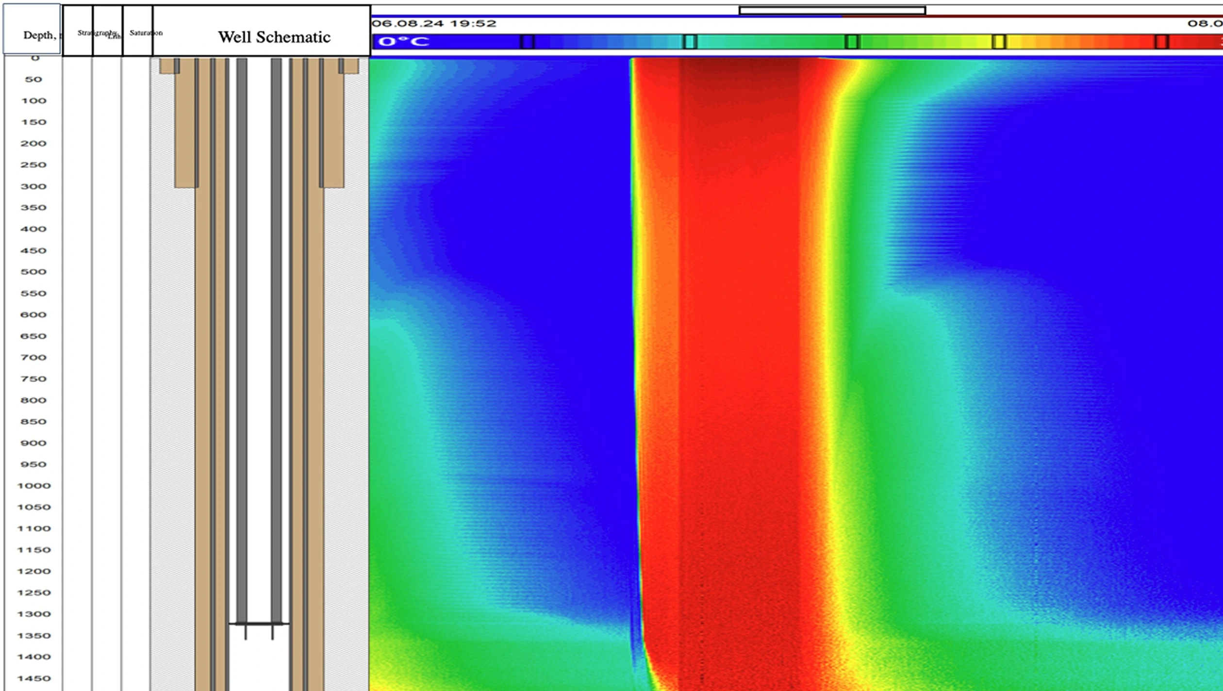 The well is a vertical barefoot steam injector which was drilled in 2009. After drilling the well was completed with a 13 3/8” conductor, 9 5/8” surface casing and 7” intermediate casing. A 4.5” pre-drilled liner (PDL) was installed across the barefoot section. The steam was injected through vacuum insulated tubing (VIT). A PLT was conducted in 2022 with the main objective to obtain the injected steam profile and distribution across the barefoot section. In addition, several relaxation temperature passes were recorded to understand the formation intake zones. The relaxation passes were recorded as follows: after 72 hours, 80 hours, 96 hours, 104 hours, 120 hours, 128 hours, 134 hours, and 144 hours of shut-in.